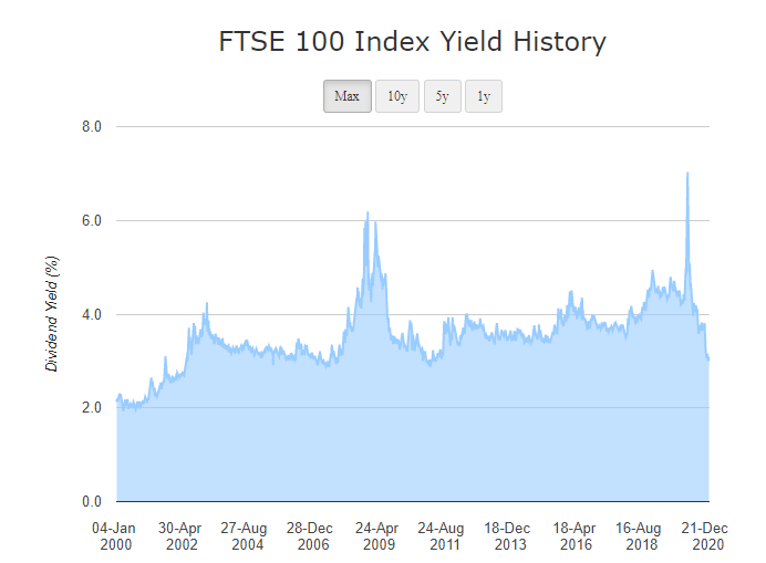 On the next page is a graph of the historical dividend ‘yields’ the FTSE has returned in the last 20 years.