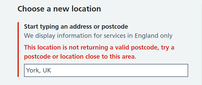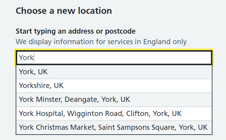 Having had my work email address verified and logged in I gaily typed ‘York’ and selected the first option here: